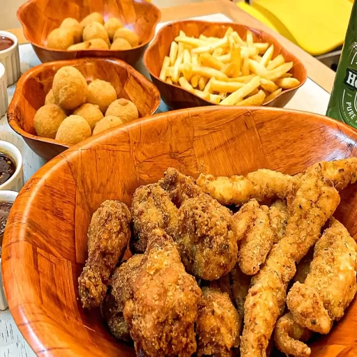 Diferente! Esse combo vai servido em uma barca com muito frango e uma piscina da nossa maionese verde para você mergulh... Ver completo