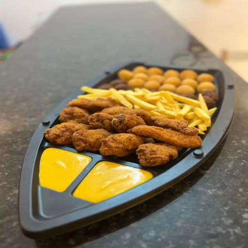 Diferente! Esse combo vai servido em uma barca com muito frango e uma piscina de cheddar cremoso para você mergulhar o ... Ver completo