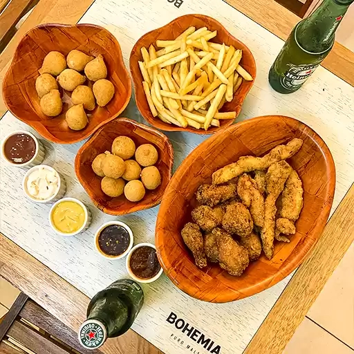 08 tirinhas de frango + 08 coxinhas super crocantes, temperadas com o tempero especial da casa e empanadas na farinha pa... Ver completo