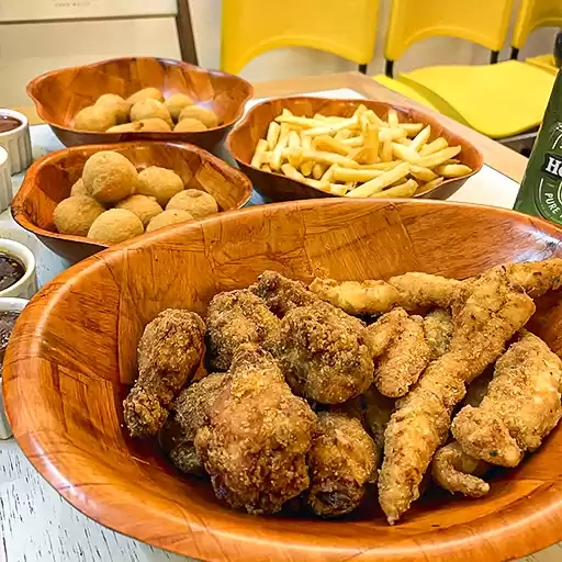 16 tirinhas de frango + 16 coxinhas super crocantes, temperadas com o tempero especial da casa e empanadas na farinha pa... Ver completo